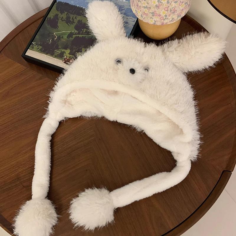 Зимняя новая милая двигающаяся пушистая шапка с ушками щенка для женщин, утолщенная теплая защита для ушей one size fits all белый