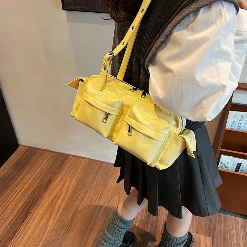 Зимняя новая нишевая ретро сумка-багет для женщин, модная и универсальная портативная сумка через плечо с несколькими карманами 32*8*13 жёлтый