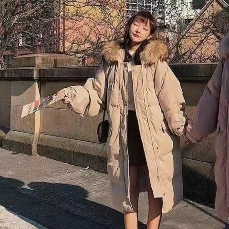 Зимняя новая свободная куртка с большим воротником из шерсти, женская длинная сетка, красная, Ins, ленивая, ветрозащитная куртка, стеганая куртка XXL бежевый