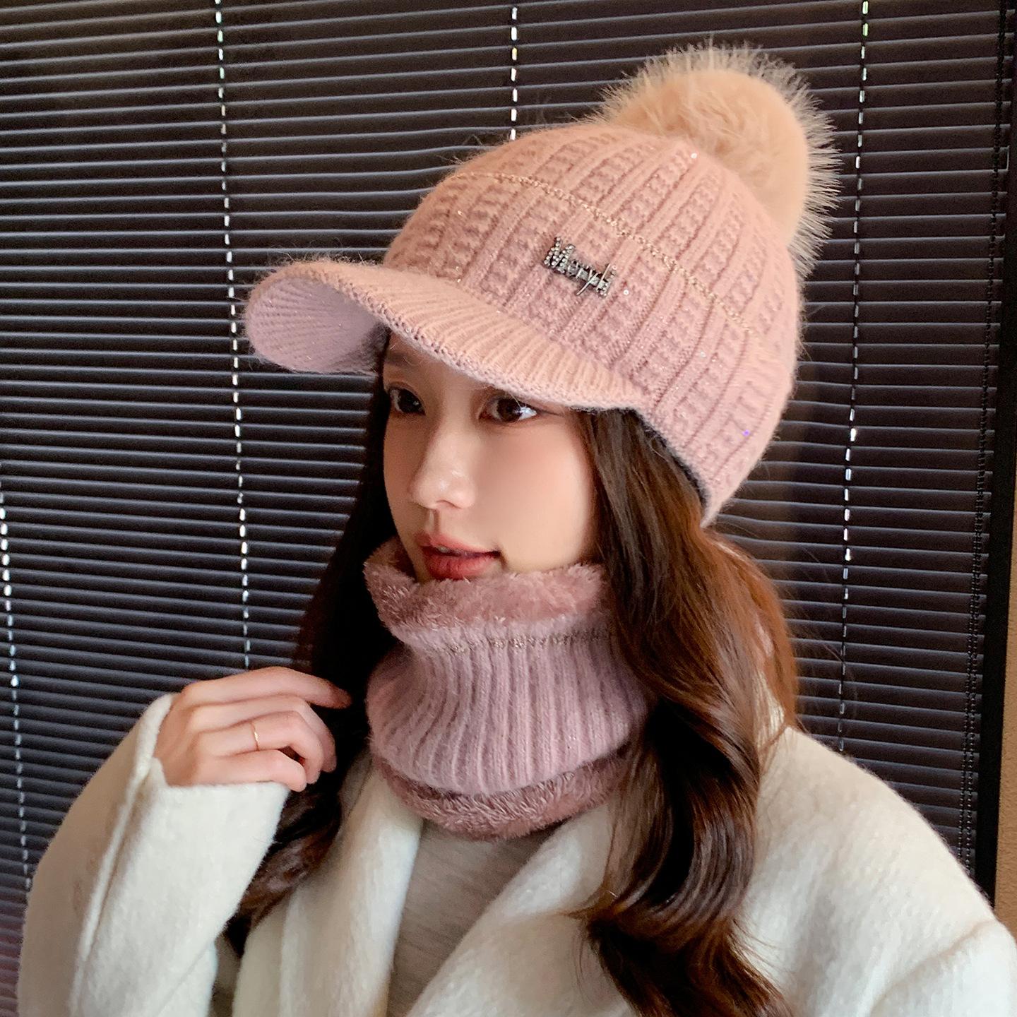 Зимняя новая шерстяная шляпа с козырьком, женская утолщенная теплая защита ушей, вязаная шапка с помпоном, ветрозащитная вязаная шапка