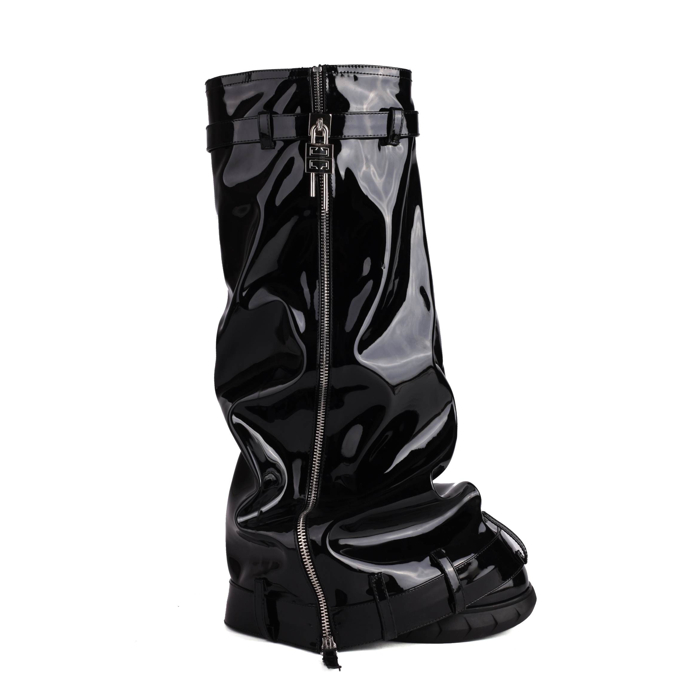 Зимняя обувь из искусственной кожи Krazing Pot, большой размер 48, водонепроницаемые женские сапоги до бедра на очень высоком каблуке, танкетке, странный стиль, на молнии 34 чёрный