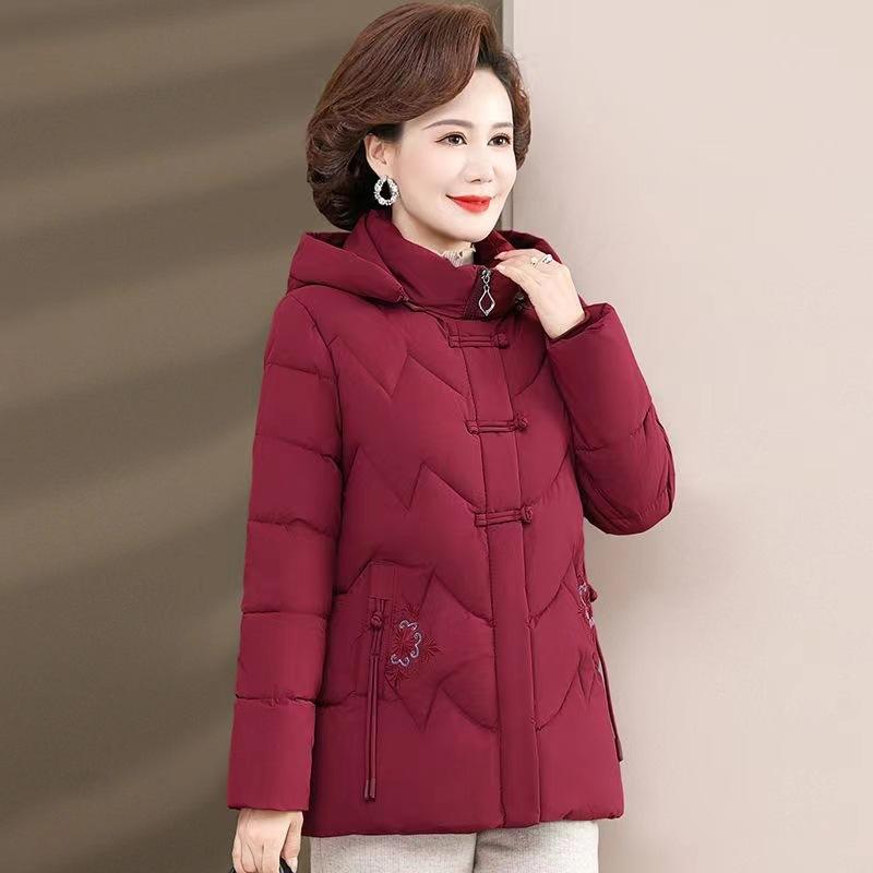 Зимняя одежда для мамы среднего возраста Пуховик Короткий в западном стиле Женская осенне-зимняя теплая куртка Куртка с наполнителем L красный