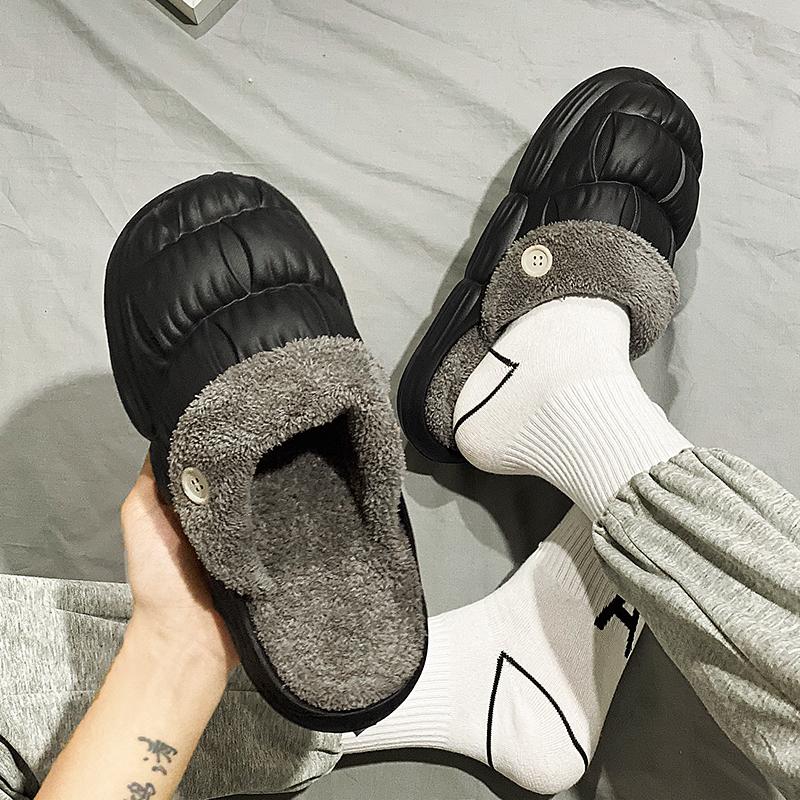 Зимняя пара, легкие, большого размера, толстая подошва с плюшевой изоляцией, хлопковая швабра, ленивые туфли, повседневная мода, хлопковая швабра, 36-45 44 чёрный