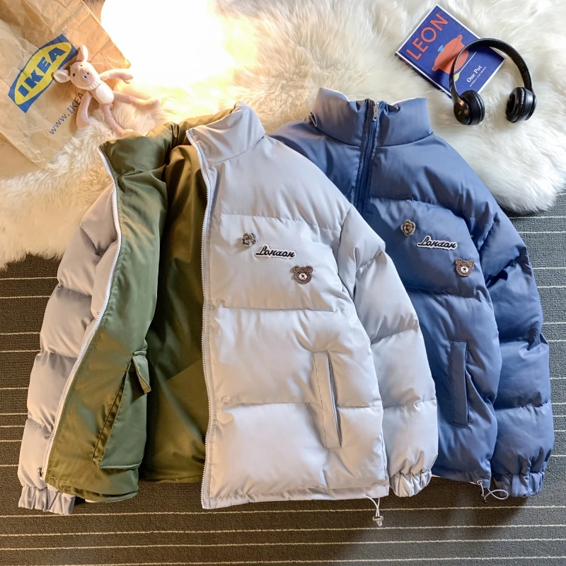Зимняя парная одежда с толстой хлопковой подкладкой с обеих сторон Мужская свободная теплая одежда с хлопковой подкладкой в Корейском стиле