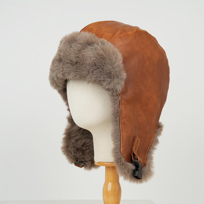 Зимняя плюшевая защита ушей, кожаная шапка-бомбер для мужчин и женщин, толстая теплая велосипедная ветрозащитная лыжная шапка коричневый