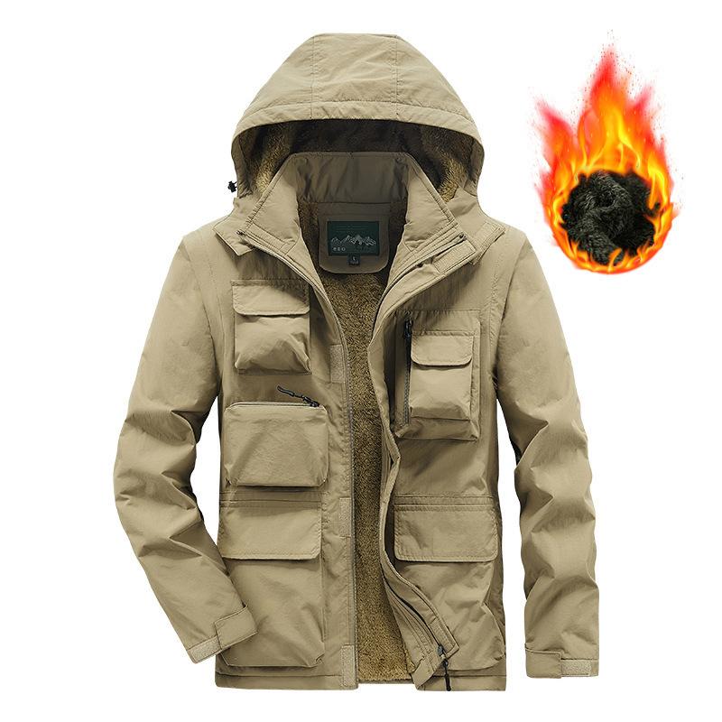 Зимняя плюшевая толстая хлопковая куртка с несколькими карманами для отдыха на открытом воздухе, съемные рукава, рабочая хлопковая куртка XXXXL хаки