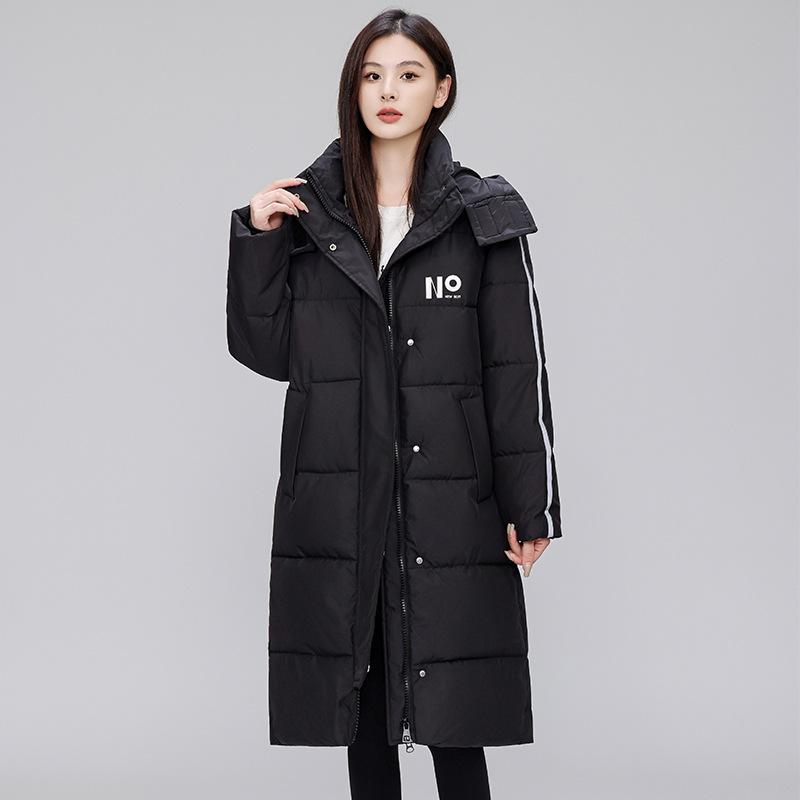 Зимняя средняя и длинная хлопковая одежда для женщин выше колена для сохранения тепла, утолщенные пальто, свободные и длинные для пар XXL чёрный
