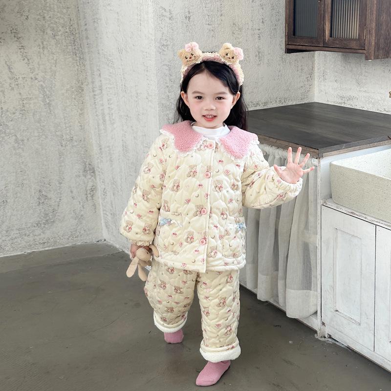 Зимняя стеганая вельветовая пижама для девочек - трехслойный плюш, милый принтованный дизайн 90 cm розовый