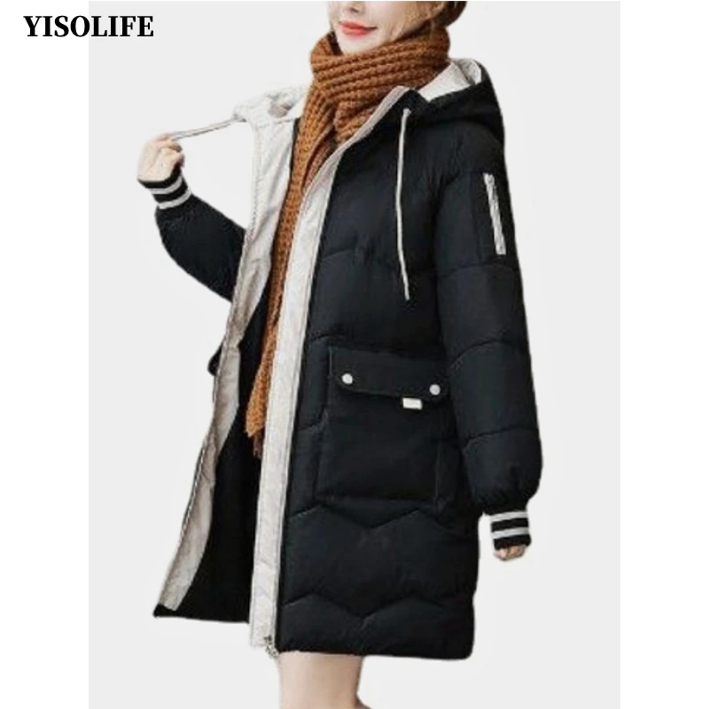 Зимняя стеганая куртка YISOLIFE на молнии для женщин, куртки с капюшоном, женские куртки, пальто средней длины