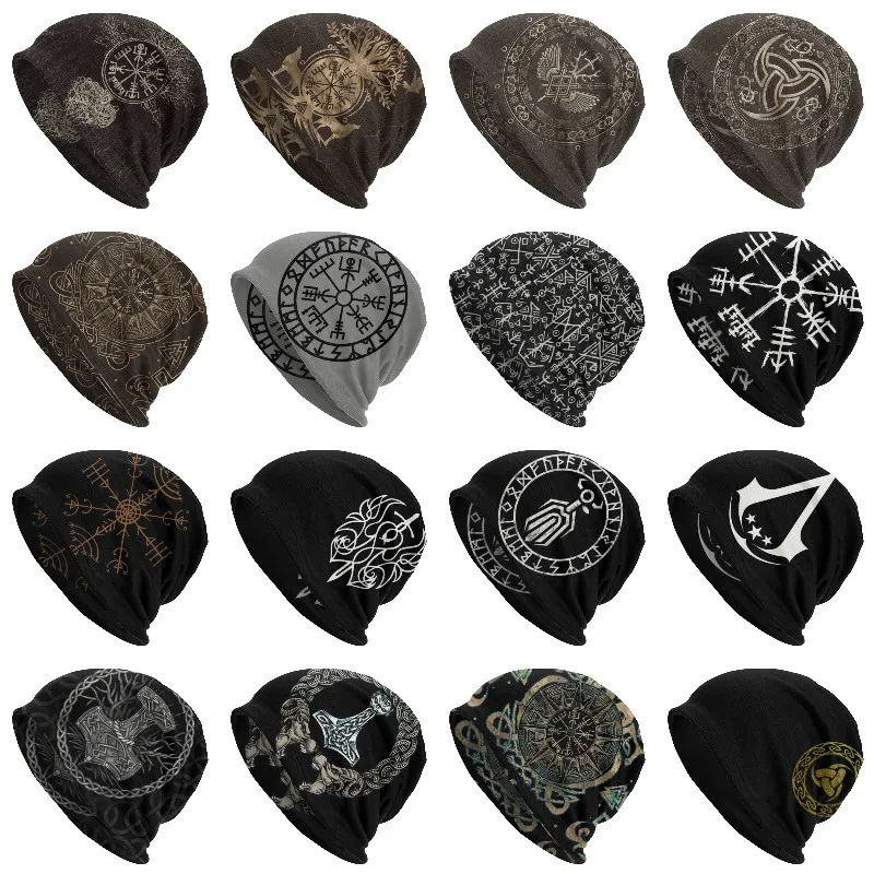 Зимняя теплая вязаная шапка в стиле хип-хоп для мужчин и женщин, облегающая шапка для взрослых Vegviir Skullie, Шапка-бини Futhark Rune Navigator, шляпа викингов 1