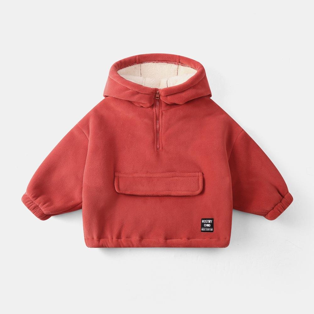 Зимняя теплая детская куртка из флиса с капюшоном и застежкой-молнией на половину длины для девочек и мальчиков, детская одежда с капюшоном, пуловер, топы для детей 2-10 лет 100cm красный