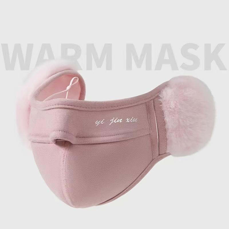 Зимняя теплая защита лица и ушей 2-в-1, дышащая эластичная маска от холода с наушниками, ветрозащитная флисовая маска для велоспорта, однотонный толстый щиток розовый