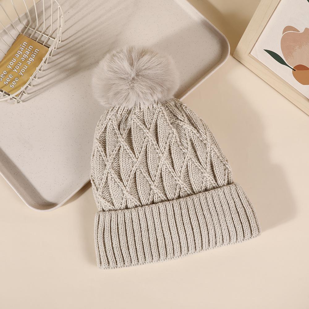 Зимняя теплая уличная плюшевая толстая вязаная шапка для женщин с комками шерсти без полей универсальная вязаная шапка бежевый