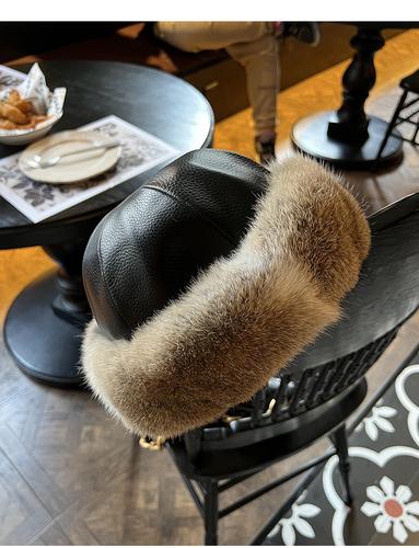 Зимняя теплая шапка из кроличьего меха с цилиндром из воловьей кожи, женский темперамент, рыбацкая шапка, шапка из натурального меха с маленьким лицом. 55-59cm