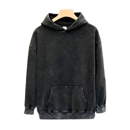 Зимняя толстовка с капюшоном для пары, свободный свитер с капюшоном в стиле ретро, длинный рукав, унисекс, эластичные манжеты, плотная толстовка с капюшоном на осень и весну M чёрный