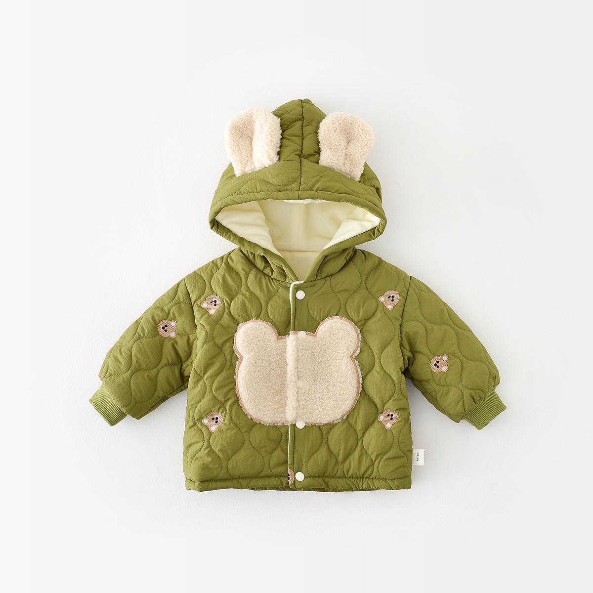 Зимняя хлопковая куртка с вышивкой «Медвежонок» — теплая стеганая флисовая куртка для мальчиков и девочек 73 cm