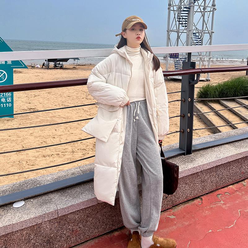 Зимняя хлопковая одежда женская большого размера модная повседневная средняя длинная свободная хлопковая куртка S белый