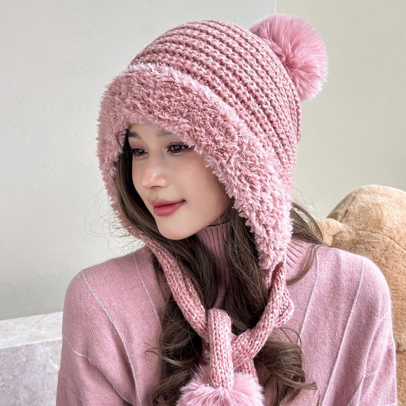 Зимняя цветочная шапка для детей в корейском стиле с бархатной теплой защитой для ушей, вязаная шапка, утолщенная вязаная шапка, ветрозащитная, для улицы, с защитой от холода