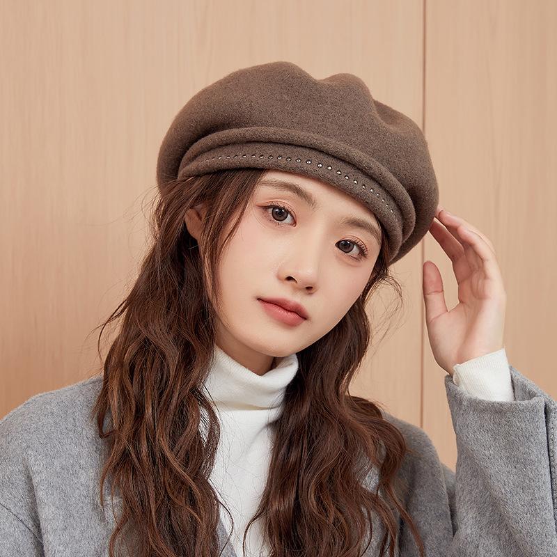 Зимняя шапка женская берет эластичный трикотажный однотонный мягкий теплый толстый ветрозащитный декоративный французский художник винтажный элегантный C One Size верблюд