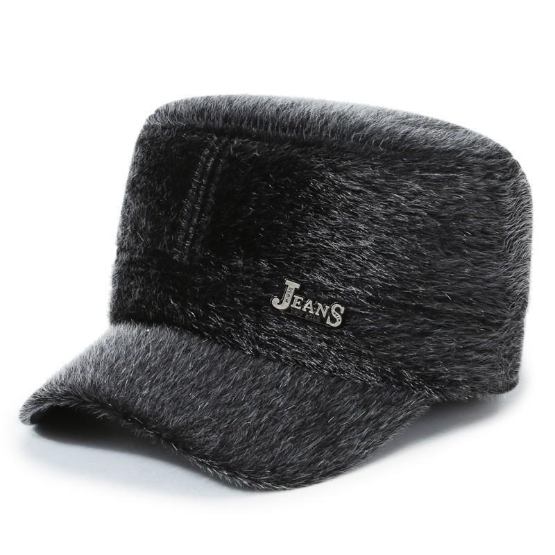 Зимняя шерстяная шапка для старика, средняя плоская, для папы, спортивная, толстая флисовая, теплая, для ушей, базовая линия серый