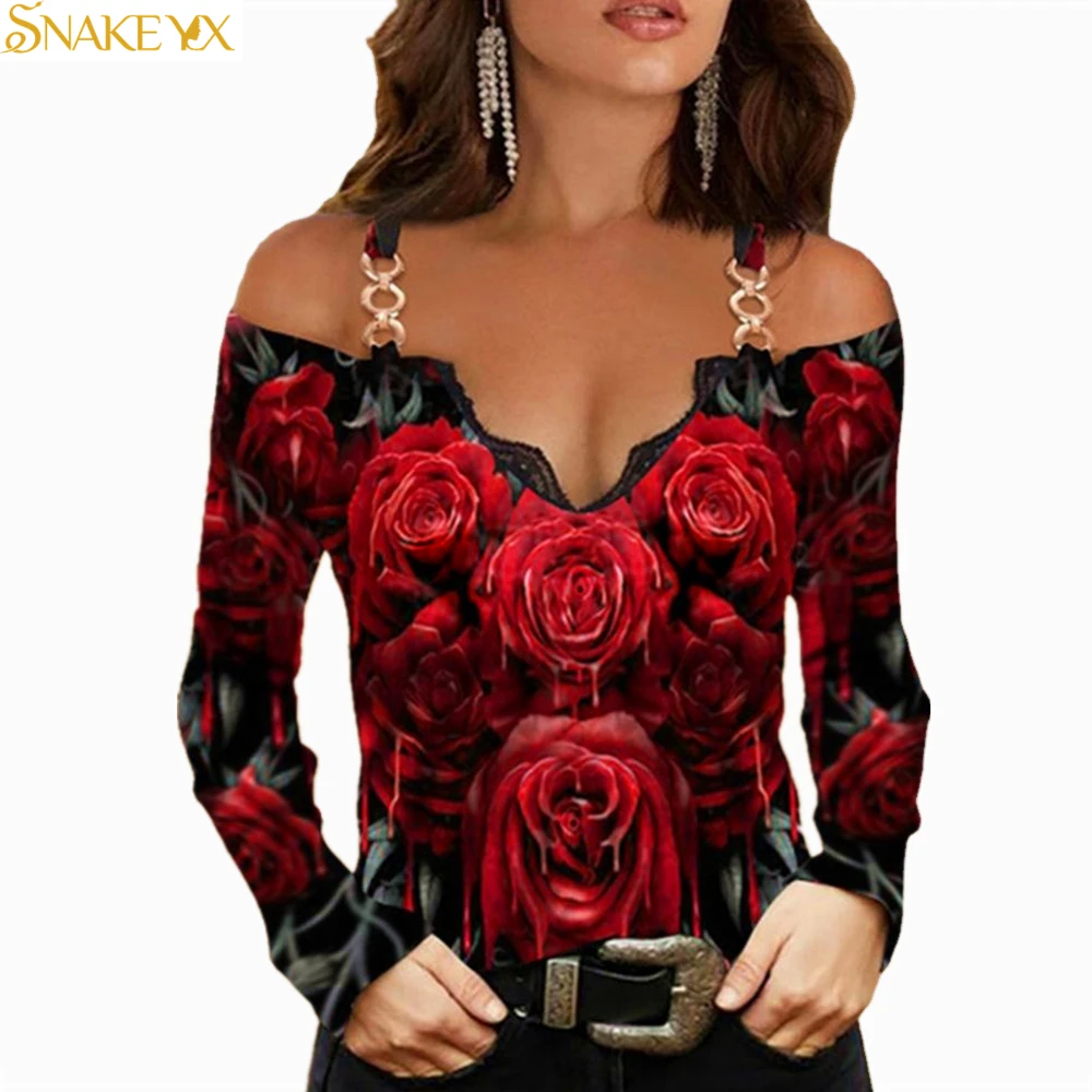 Змеиная женская футболка с длинным рукавом и металлическим ремешком