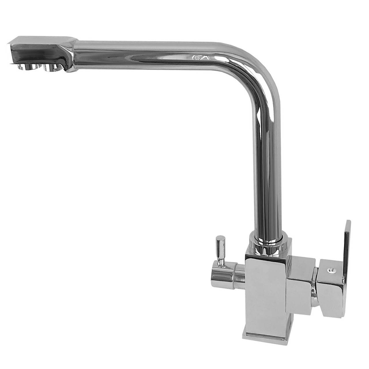 Змішувач GLLR-0100 CHROM Globus Lux комбінований під ОСМОС на гайці , колір хромКомбінований змішувач вражає своєю продуманістю до використання і монтажу. Класичний колір покриття-хром.Переваги комбінованих під систему зворотного осмосу моделей змішувачів Globus Lux:1 Довговічність і безвідмовність в експлуатації2. Вилив обертається на 360 градусів і зручний для кухонних мийок з декількома чашами3. Елегантність форм, міцність і надійність4. Висока функціональність5. Використання якісних екологічно чистих матеріалів6. Інноваційні технології виробництва7. Корпус виготовлений з латуні з вмістом міді не менше 70%Комплектація:- Змішувач латунний- Шланг М10 * 1 / 2-3шт- Quick fitting 1/4 "-1/2" (зовнішня різьба)- Кріплення для змішувача - гайкаЗмішувач має 3 контури для підключення води:- 1 і 2 використовується для підключення холодної та гарячої води. Змішування води відбувається за допомогою стандартного картриджа з відкриванням великої рукоятки;- 3-й контур використовується для підключення очищеної води. Відкриття чистої води здійснюється за допомогою іншого картриджа з відкриванням маленької рукоятки.Водопровідна та фільтрована вода мають окремі канали (трубка в трубці) і вихідні отвори в лійці змішувача, що повністю виключає можливість змішування очищеної та брудної води.Змішувач виготовлений з латуні. Хромоване блискуче покриття рівномірне і гладке. У конструкції застосовуються стандартні змінні картриджі, гнучкі шланги і різьбові підключення. Все це робить змішувач повністю ремонтопригодним. Установчий отвір в мийці такий самий, як і для звичайних кухонних змішувачів.Сантехніка ТМ «Globus Lux» - це німецька якість перевірена роками і завжди великий вибір продукції.