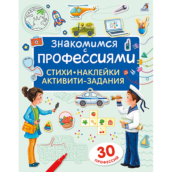 Яркая книга в мягком переплёте «Знакомимся с профессиями» издательства «Робинс» поможет расширить познания ребёнка о роли разных профессий. В игровой форме с весёлыми стихами Евгения Сосновского детям будет интересно и легко запоминать названия профессий, а также для чего они созданы.