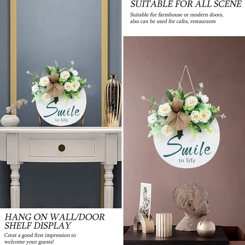 Знак Приветствия для крыльца, круглый деревянный знак приветствия с надписью «Smile» и цветами, навесной знак для крыльца