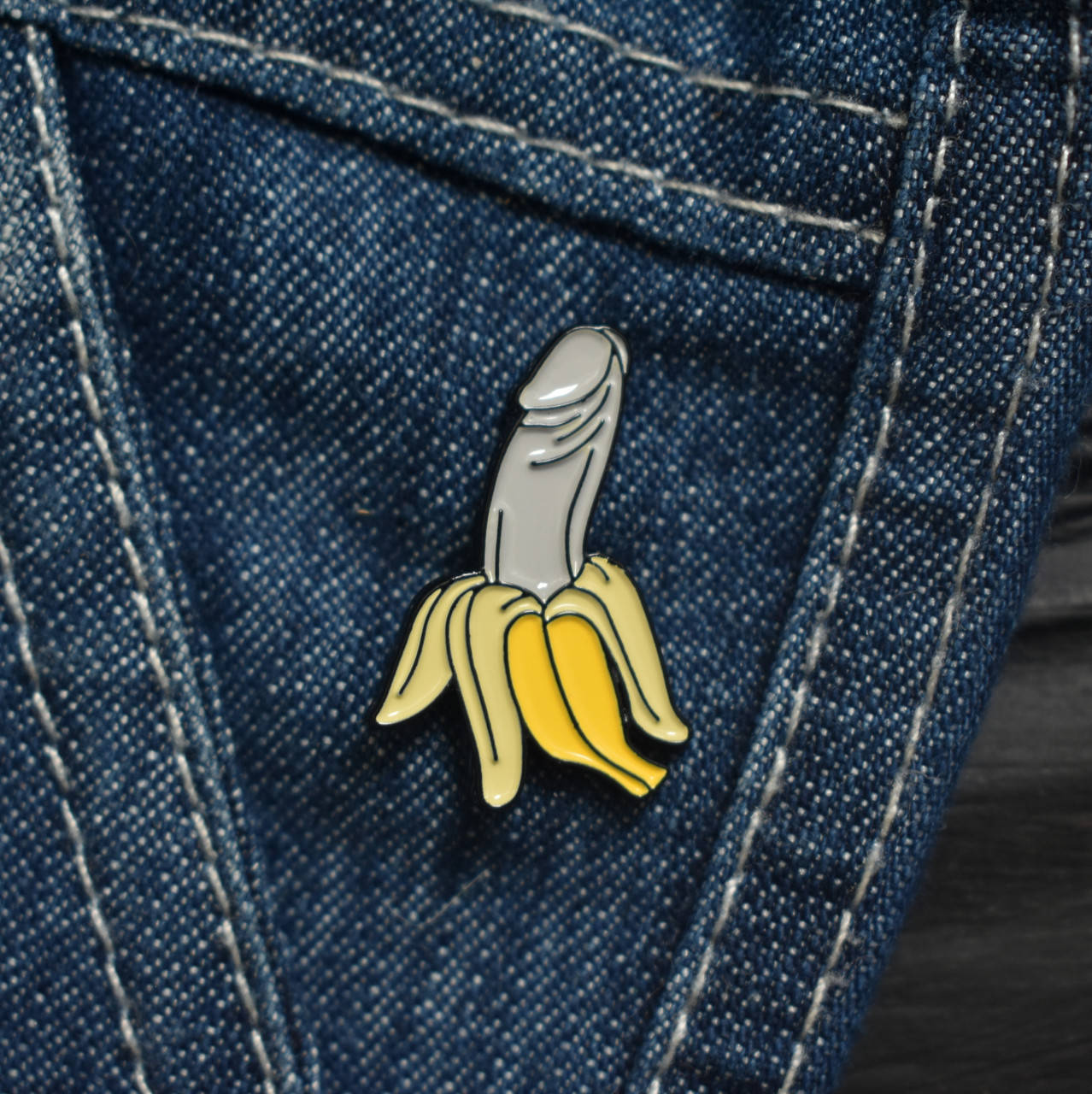 Значок, брошь-значок, пин из металла на одежду, металлический значок "Банан-член"