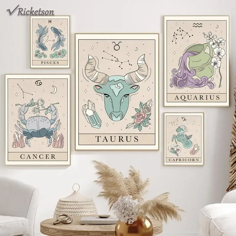 Зодиак Астрология настенная Картина на холсте созвездия скандинавские плакаты и принты ретро настенные картины для декора гостиной
