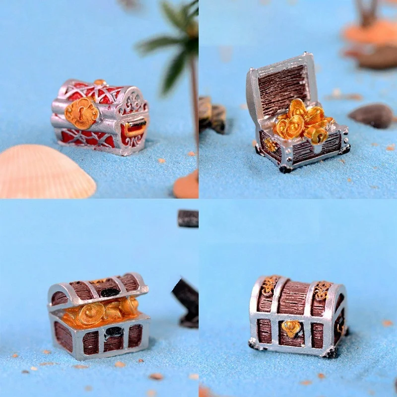 Золотая коробка для сокровищ, мини-украшения для аквариума, украшение для дома и сада, Нетоксичная коробка для сокровищ из смолы