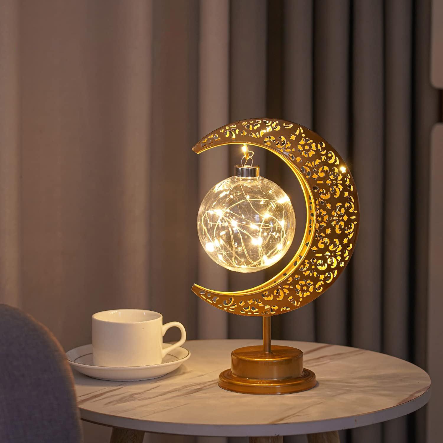 Золотая луна звезда ночник мусульманский Раманда фестиваль украшения настольная лампа для праздника рождественской атмосферы стильное освещение теплый белый