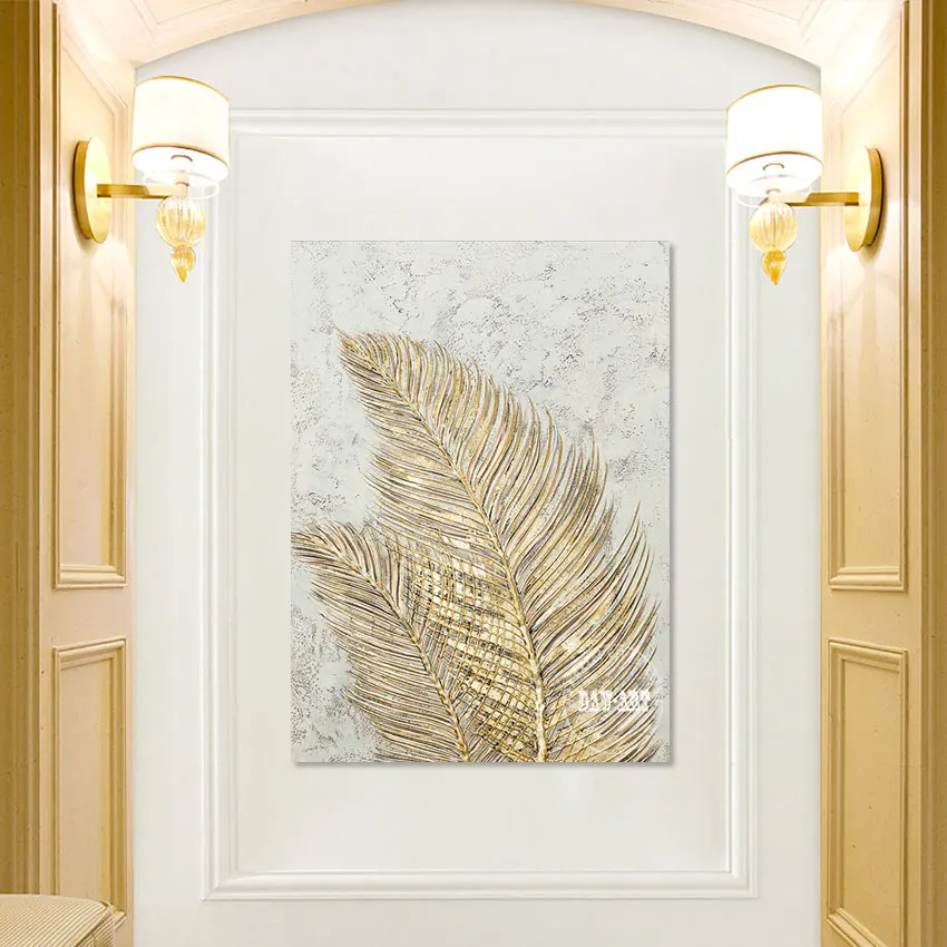 Золотая фольга, абстрактная картина маслом, высокое качество, лист, настенное искусство, холст, ручная картина, большой размер, без рамки, украшение для спальни