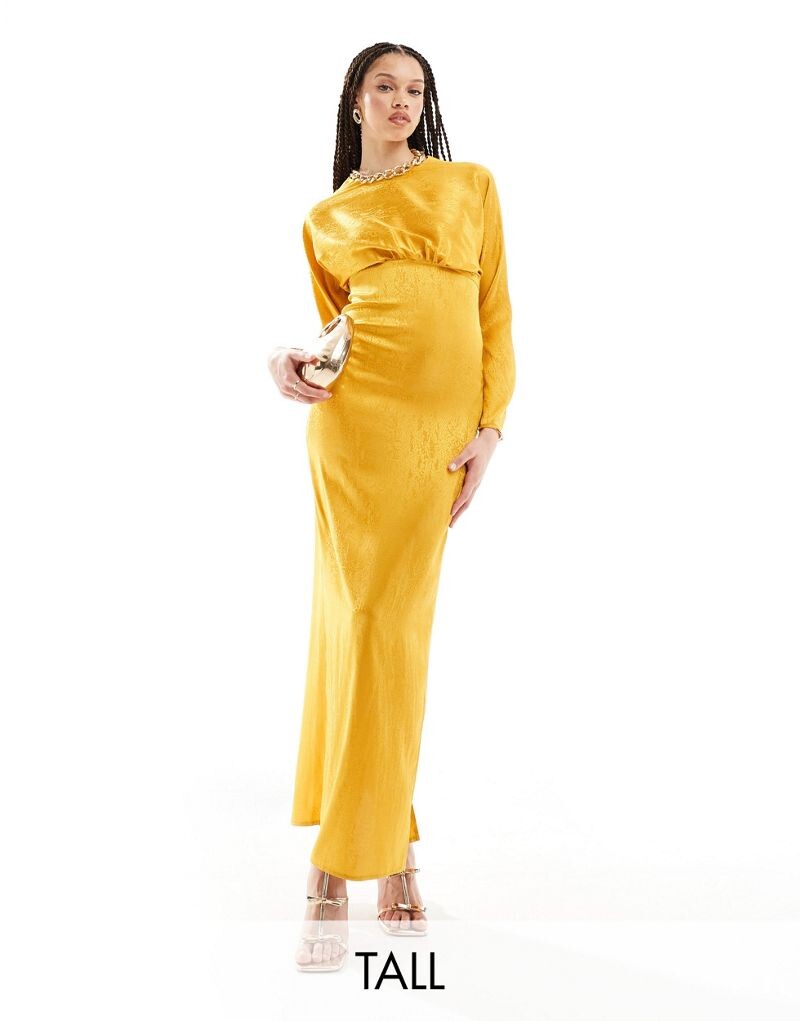 Золотое атласное платье макси Flounce London Tall с рукавами-кимоно