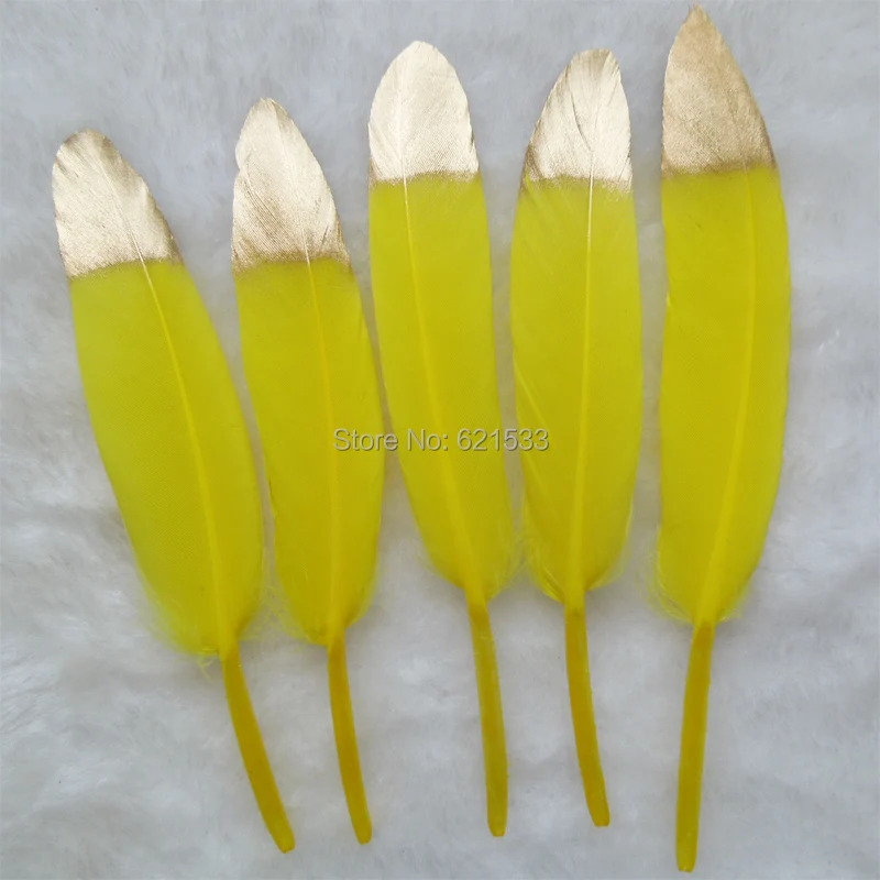Золотой окунутый желтый утиный пух, металлик Золотой ручной росписью утиный пух, Новые Перья, 50 шт./лот