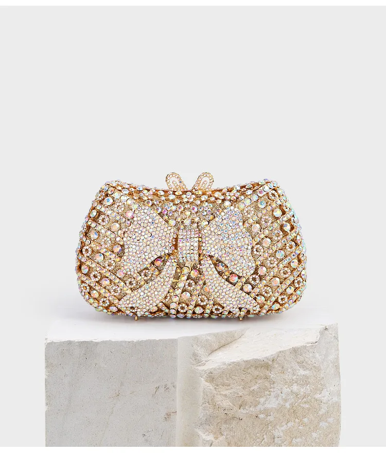 Золотые ажурные сумки с бантом и бриллиантами, женский клатч для ужина, свадьбы, кошелек с кристаллами, женские элегантные вечерние сумки дл...