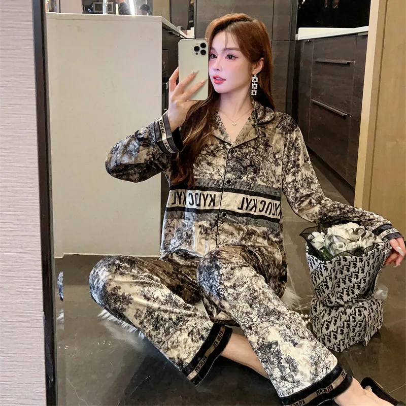 Золотые бархатные пижамные комплекты, Женская Осенняя Женская пижама, женская одежда для сна, домашняя одежда, пижамные костюмы