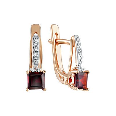 Серьги с гранатом и фианитом. Красное золото 585 пробы. Вес 2,356гр. ;2 граната, суммарный средний вес камней 0.968 карат;14 фианитов, суммарный средний вес камней 0.024 карат.