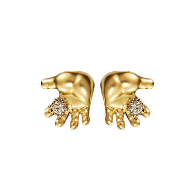 Серьги Ладошки с цветком, комбинированное золото (желтое и белое). Примерный вес изделия 5 гр. Вставки: 2 бриллианта, примерным весом в 0.16 карат, огранки Кр-57..