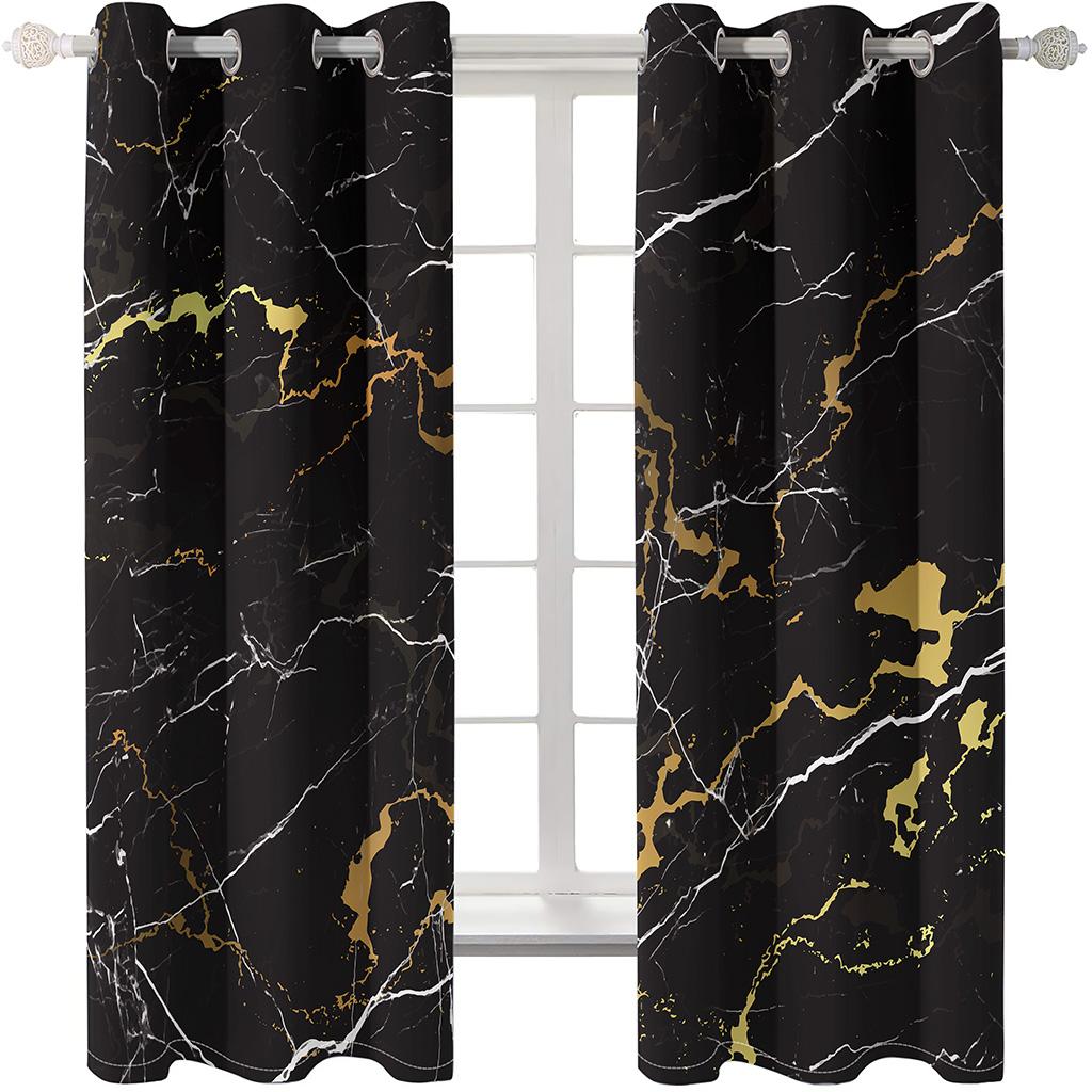 Золотые, черные, мраморные, абстрактные, тонкие, оконные шторы для детей, гостиной, спальни, ванной, двери, кухни, декор, шторы, жалюзи, холла W50 X H130(CM)X2&Grommet Top