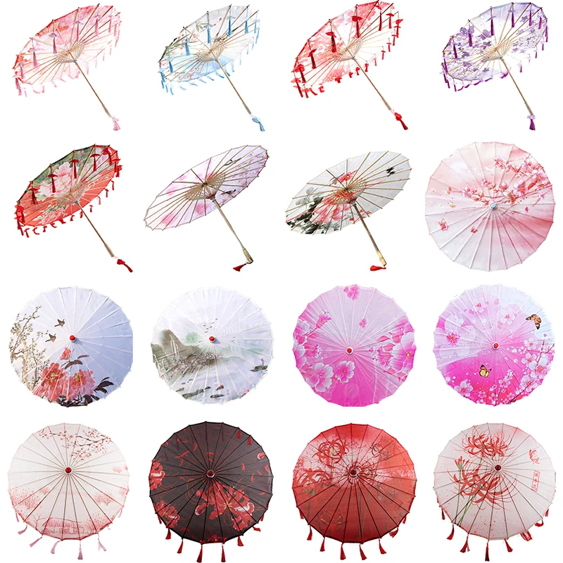 Зонт женский из шелковой ткани, декоративный бумажный в китайском стиле, с японскими цветами вишни, для древнего танца