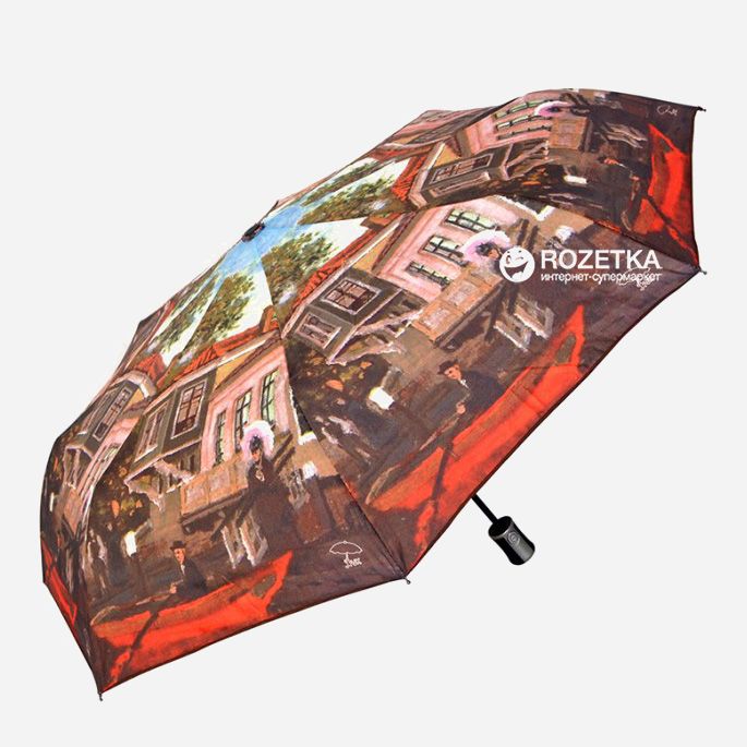 Красивый автоматический складной зонтик с красивым принтом красного цвета от фирмы AVK. Элегантный зонт подойдет под любой ваш образ.