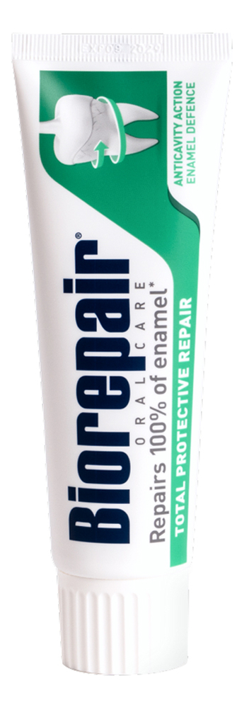 От производителя:Зубная паста для комплексной защиты Total Protection Repair — эффективное средство для ежедневного ухода от Biorepair. В основе запатентованной формулы содержится жидкая эмаль, структура которой идентична минералам природного происхождения. Это позволяет восстановить эмаль и обеспечить надежную защиту зубов. Средство помогает:- пломбировать микротрещины;- предотвратить кислотную эрозию, кариес и зубной камень;- естественно отбелить и придать зубам блеск.Эффект восстановления эмали доказан клиническим путем. Паста имеет безопасный состав и является низкоабразивной.Способ применения:Используйте пасту ежедневно утром и вечером. Рекомендована в возрасте от 7 лет.Состав: Зубная паста для комплексной защиты Total Protection Repair от Biorepair состоит из:Aqua, Zinc Hydroxyapatite15% (microRepair®), Glycerin, Sorbitol, Hydrated Silica, Silica, Aroma, Cellulose Gum, Tetrapotassium Pyrophosphate, Sodium Myristoyl Sarcosinate, Sodium Methyl Cocoyl Taurate, Sodium Saccharin, Citric Acid, Phenoxyethanol, Benzyl Alcohol, Sodium Benzoate.