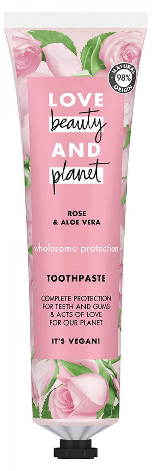 Мы верим, что каждый маленький знак любви к планете делает ее красивее. Поэтому наша зубная паста с розой и алоэ вера сделана с любовью и является веганской, при этом обладая биоразлагаемой формулой на 94% . Кроме того, алюминиевый тюбик и пластиковая крышечка нашей пасты полностью пригодны к переработке, поэтому вы можете сделать мир лучше, пока чистите зубы.Эта зубная паста с Алоэ Вера и другими тщательно подобранными этически полученными растительными ингредиентами помогает укрепить зубы и сохранить ваши десны здоровыми, для великолепной улыбки. Кроме того, вы полюбите нежный аромат болгарской розы, который придает пасте тонкий изысканный вкус.Чтобы разнообразить ежедневный уход за зубами и деснами и получить истинное удовольствие, попробуйте зубную пасту с ценными свойствами Алоэ Вера. Мы позаботились, чтобы в ней не было Sls, искусственных красителей или подсластителей, поэтому вы можете счастливо улыбаться, наслаждаясь эффектом и не нанося вреда окружающей среде! Для здоровья зубов и десен стоматологи рекомендуют чистить зубы 2-3 минуты не менее 2 раз в день.Продукты Love, Beauty & Planet подарят тебе красоту и ощущение счастья от того, что ты делаешь добро для планеты. Наша планета нуждается в нашей особой заботе, также как и твоя красота. Весь путь производства наших продуктов прошел проверку, и теперь мы можем с уверенностью сказать, что после нас не остается вреда для окружающей среды. Мы не тестируем наши продукты на животных и используем только этически полученные ингредиенты для создания наших продуктов И теперь каждый ингредиент в их составе готов работать, чтобы подарить тебе эффективный уход и восхитительную сенсорику.