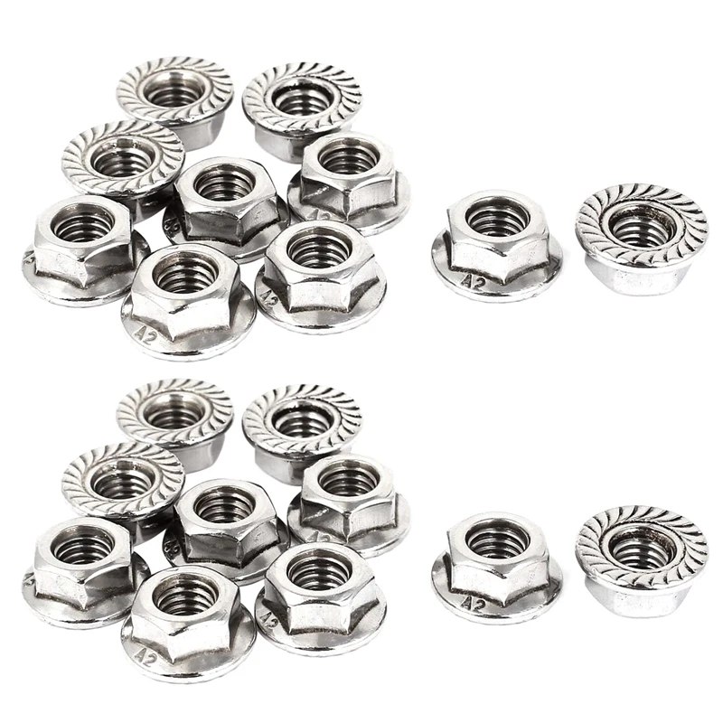 Зубчатые шестигранные фланцевые гайки из нержавеющей стали с резьбой M8, высота 8 мм, 20 шт.