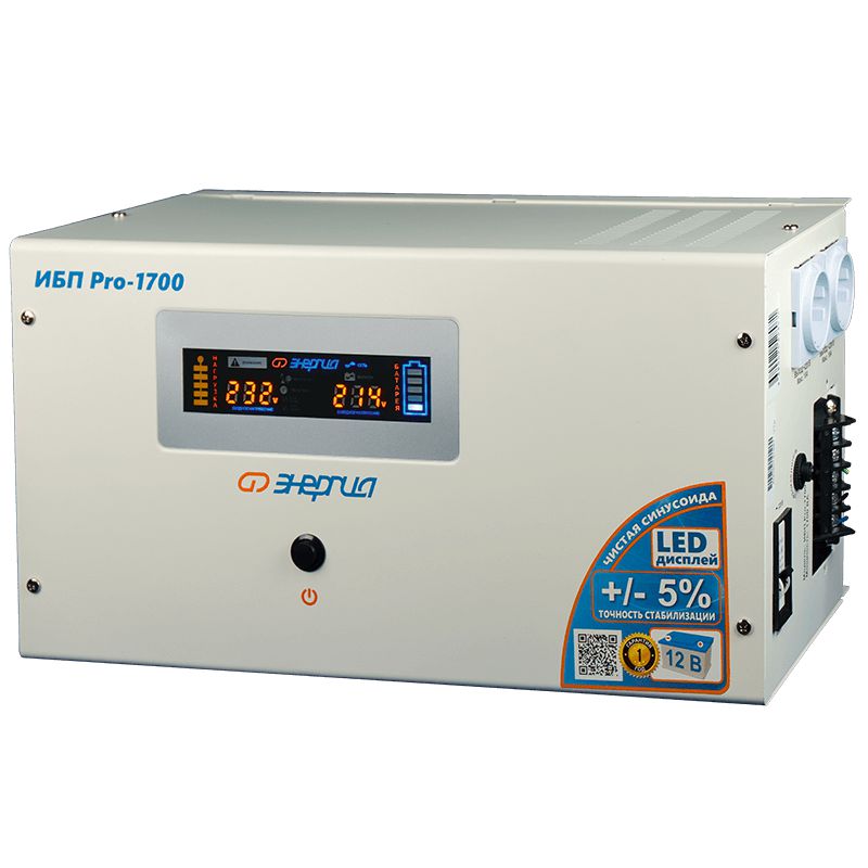 ИБП Энергия Pro, 1700 В·А, 1.2 кВт, EURO, розеток - 2, белый (Е0201-0030) (без аккумуляторов), Pro