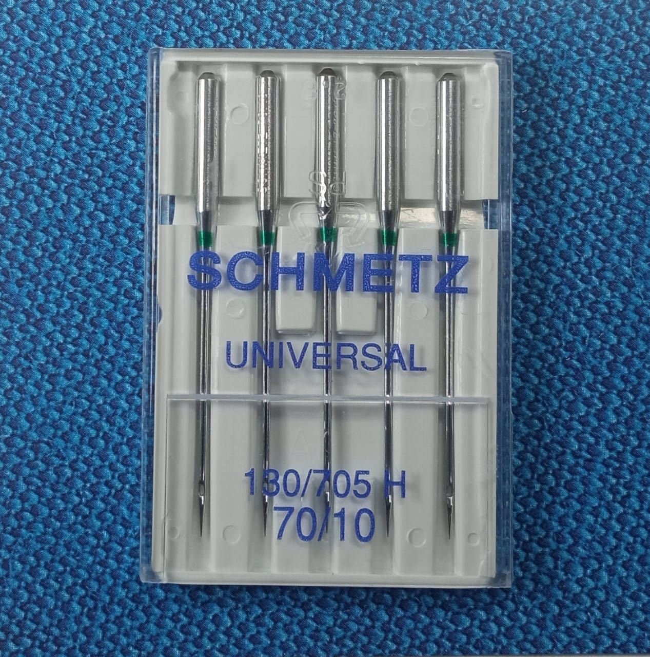 Иглы универсальные, стандартные, № 70 для обычных типов тканей, спиленная колба, 5 штук в упаковке - 5x70. Используются в бытовых швейных машинах для шитья тканевых материалов. 130/705HVBS 70