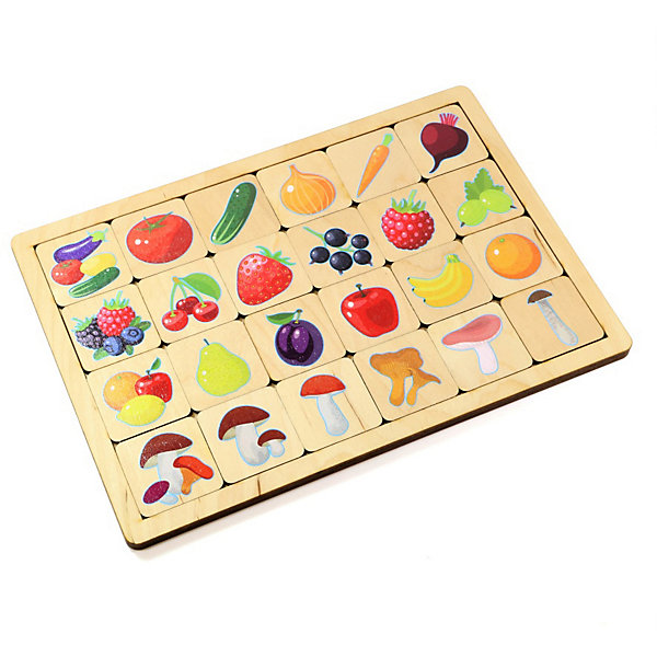Цель игры – выстраивать цепочки из фишек, группируя их по разным признакам, например, по цветам или отыскать все овощи или фрукты. На поле помещаются четыре ряда по шесть штук. Собирая фишки вместе, ребенок запоминает названия и учится различать плоды. Кроме того, тренируется мелкая моторика, логика и внимательность.