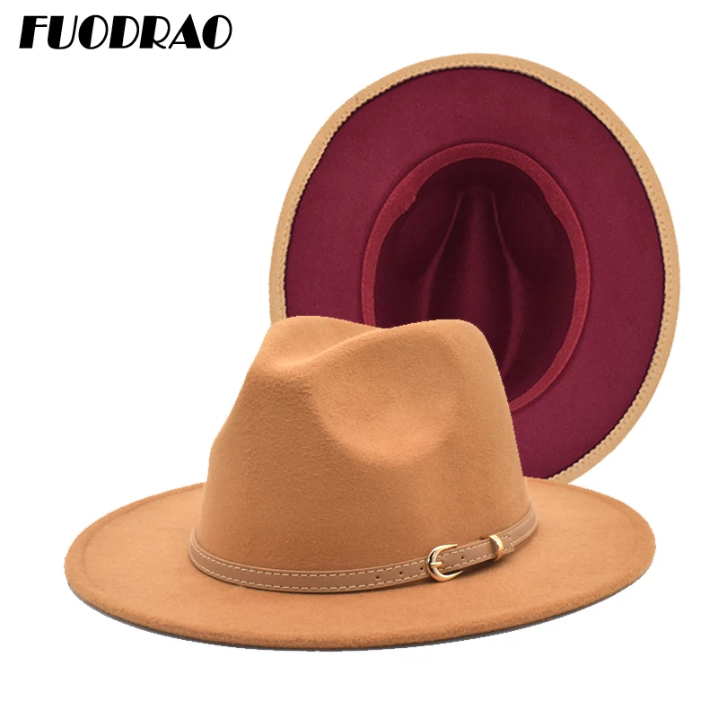 Осенняя фетровая шляпа FUODRAO унисекс в стиле пэчворк, шляпа джаз, женские шляпы с плоскими полями из смешанной шерсти, шляпы Трилби, винтажная шляпа F139