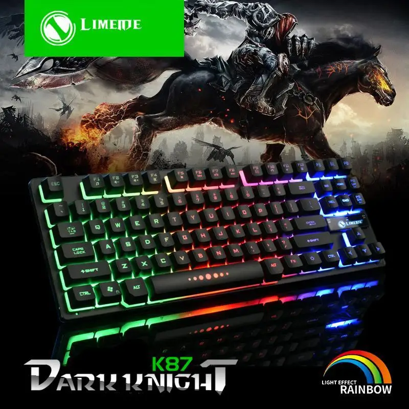 Игровая клавиатура, Проводная игровая мышь в комплекте, K87 Проводная Механическая механическая клавиатура с RGB подсветкой, русская клавиату...